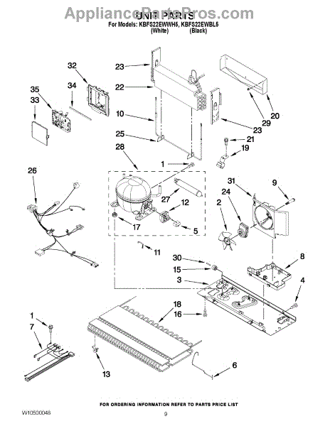 Parts for Kitchenaid KBFS22EWBL5: 05 - Unit Parts