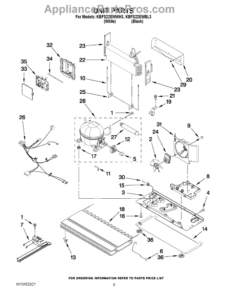 Parts for Kitchenaid KBFS22EWWH3: 05 - Unit Parts