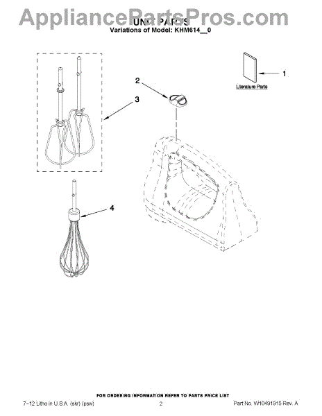 Parts for Kitchenaid KHM614CU0: 01 - Unit Parts