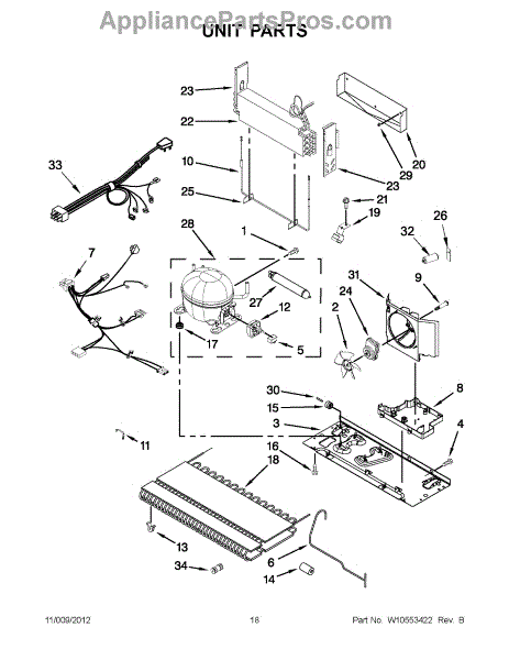 The Evaporator is an OEM part for Whirlpool refrigerators. It is part of the refrigerator's cooling system, responsible for removing heat from the interior and maintaining the desired temperature.