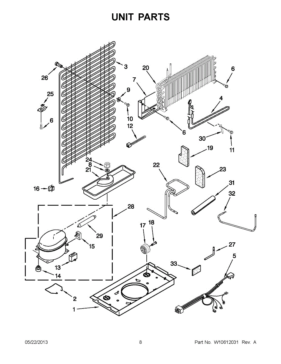 Fix water leaking on the floor or cooling issues with this refrigerator evaporator assembly. Located behind the freezer back panel. Moderate repair.