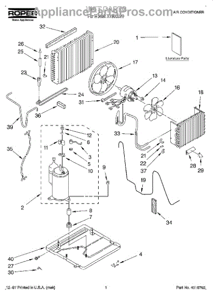 Parts for Roper X10002G0: 01 - Unit, Literature Parts