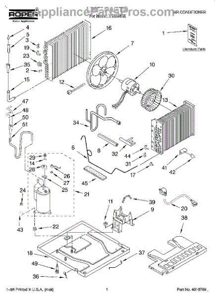 Parts for Roper X18004G0: 01 - Unit, Literature Parts