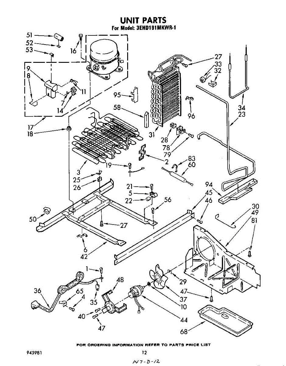 Parts for Whirlpool 3EHD191MKWR1: 12 - Unit Parts