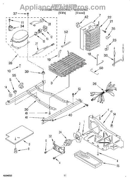 This is an evaporator that is located inside many refrigerators. It has a part to play in ensuring the items inside the appliance stay cold. When the refrigerator turns from a liquid into a gas through evaporation, it cools the area nearby and makes it ideal for storing perishable food items. The evaporator pulls air from the refrigerator and blows it over the coils to keep it at the appropriate temperature. There are several signs that the evaporator is damaged or no longer working correctly. Sometimes it will make a chirping or squealing noise. It may cause the refrigerator to be too warm, which may cause issues with the food items inside. Frost buildup on the coils is also a bad sign. If the evaporator is damaged, it needs to be replaced. Unplug the refrigerator and remove the panel over the evaporator. Remove the clamps to uninstall the part. The new part can be installed in the same place. Make sure to test before use.This evaporator is made to be compatible with Maytag, Whirlpool, KitchenAid, and Kenmore refrigerators. It is directly sourced from the manufacturer and sold on an individual basis. This is an authentic OEM replacement component.