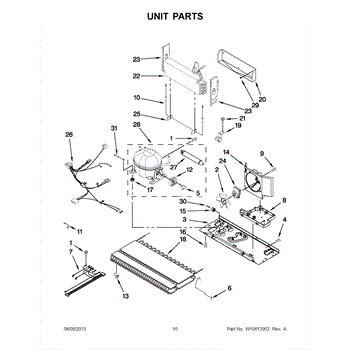 The Drip Pan is an OEM part for Whirlpool refrigerators. Located beneath the refrigerator, it collects and holds water that drips from the defrost system, preventing it from leaking onto the floor.
