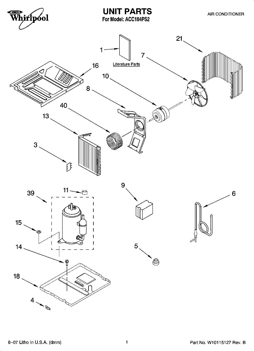 Parts for Whirlpool ACC184PS2: 01 - Unit Parts