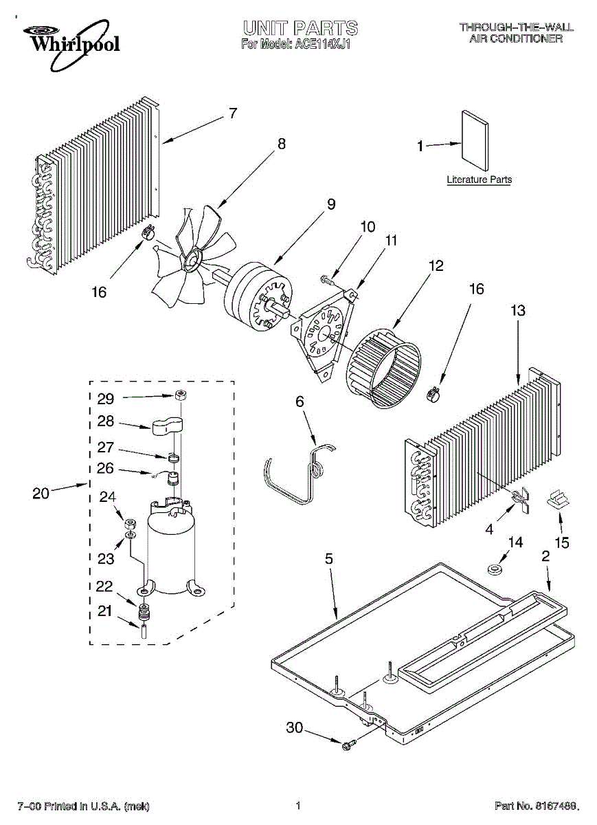 Parts for Whirlpool ACE114XJ1: 01 - Unit Parts