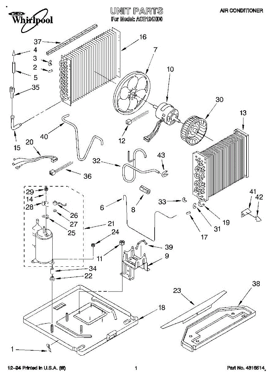 Parts for Whirlpool ACE124XD0: 01 - Unit, Literature Parts