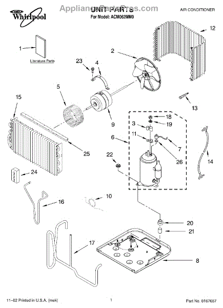 Terminal cover gasket seals electrical connections in air conditioners. Replace if cracked, brittle, or missing to prevent moisture damage. Verify fit.