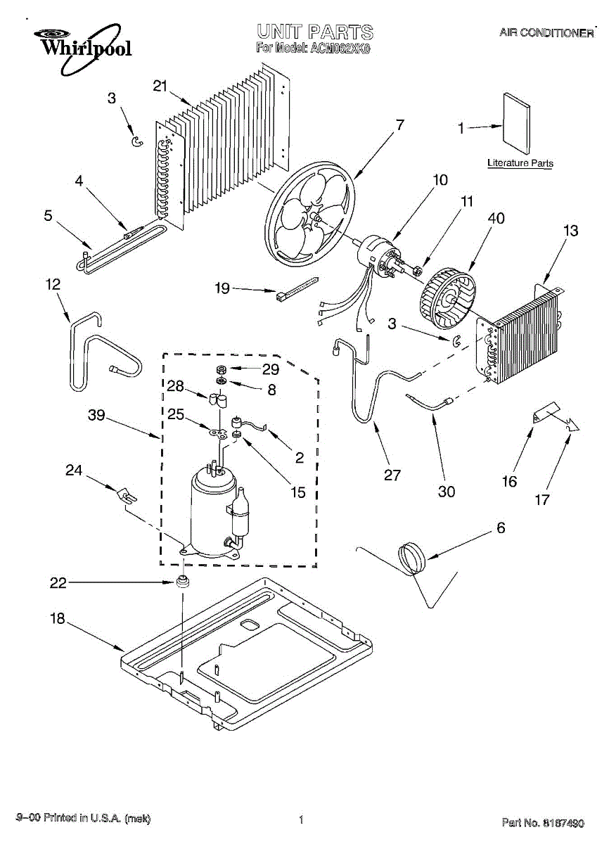 Parts for Whirlpool ACM062XK0: 01 - Unit, Literature Parts