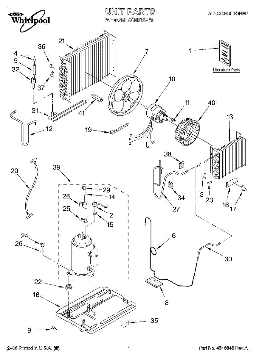 Parts for Whirlpool ACM072XE0: 01 - Unit, Literature Parts