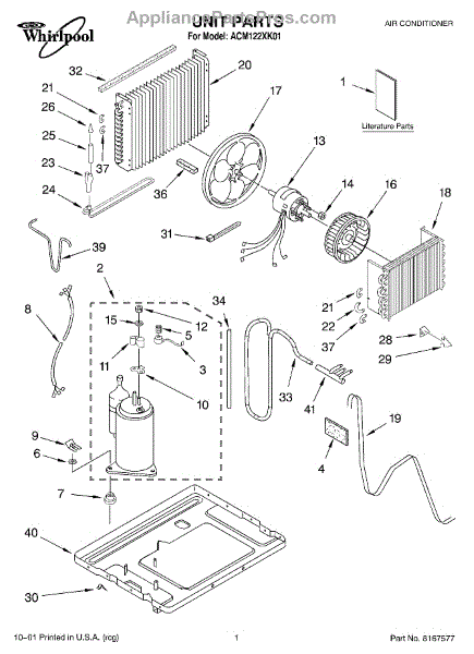 Parts for Whirlpool ACM122XK01: 01 - Unit, Literature Parts