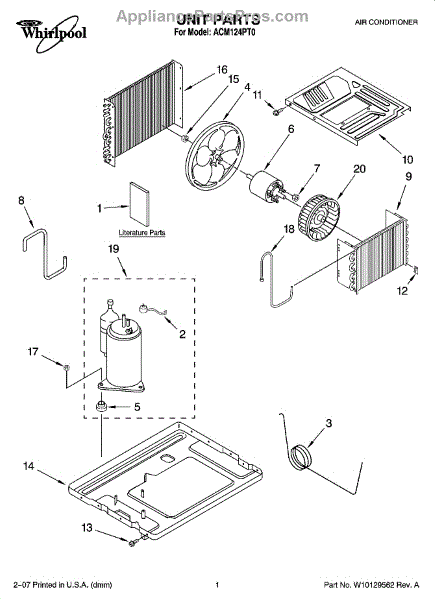 Parts for Whirlpool ACM124PT0: 01 - Unit Parts