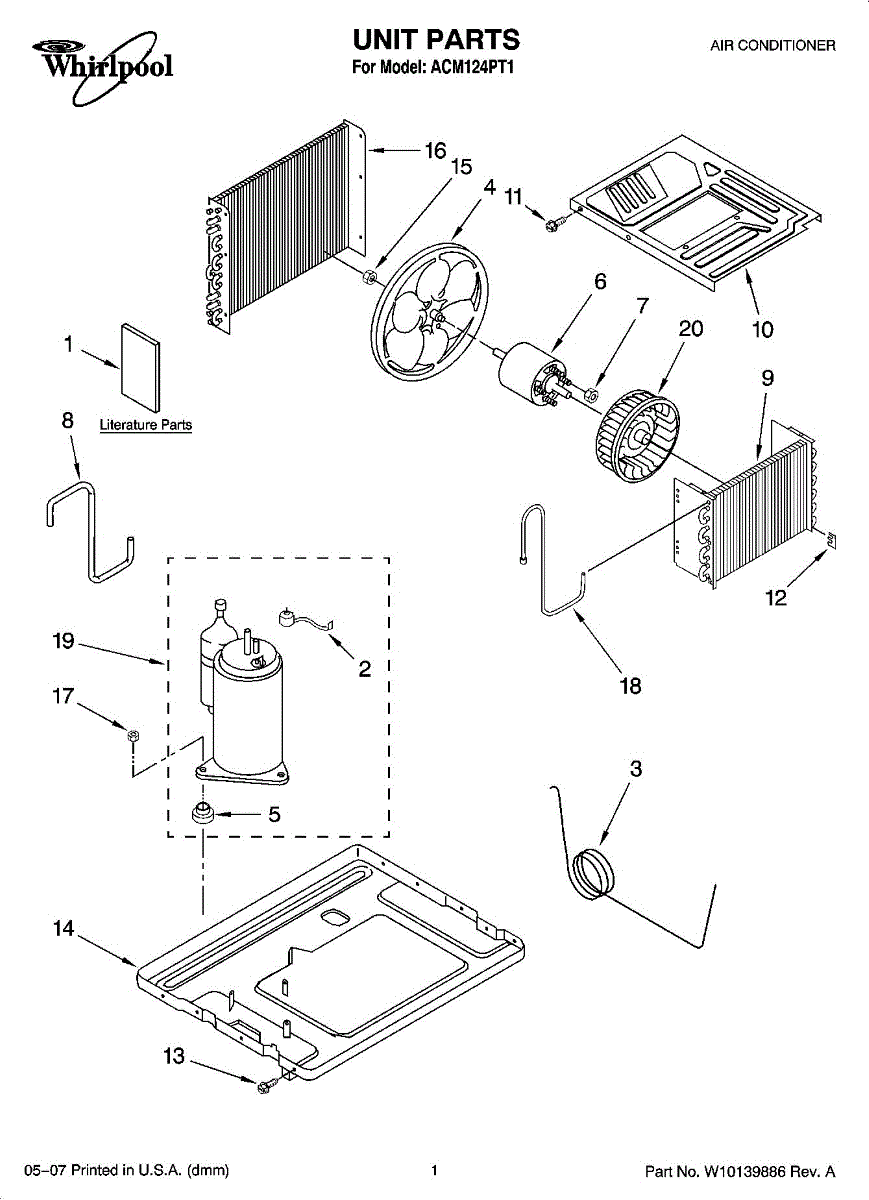 Parts for Whirlpool ACM124PT1: 01 - Unit Parts