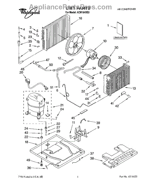 Parts for Whirlpool ACM184XE0: 01 - Unit, Literature Parts
