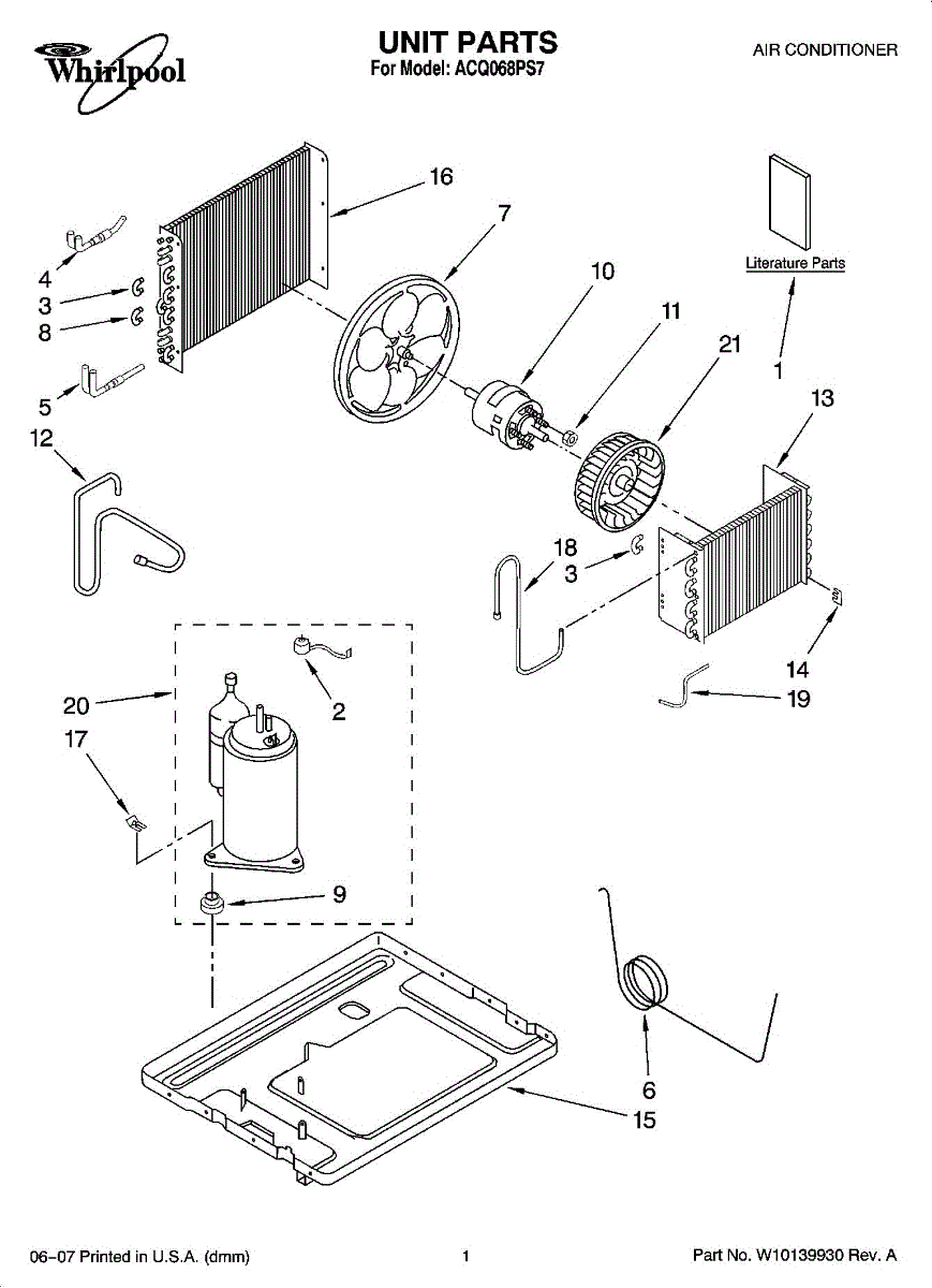 Parts for Whirlpool ACQ068PS7: 01 - Unit Parts