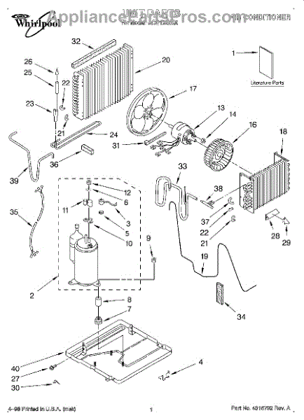 Parts for Whirlpool ACQ102XG0: 01 - Unit, Literature Parts