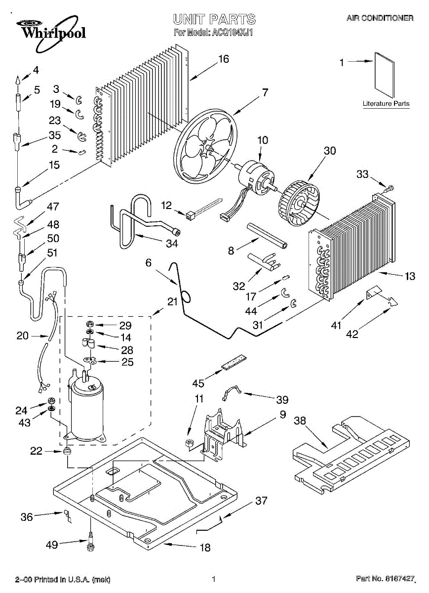 Parts for Whirlpool ACQ184XJ1: 01 - Unit, Literature Parts