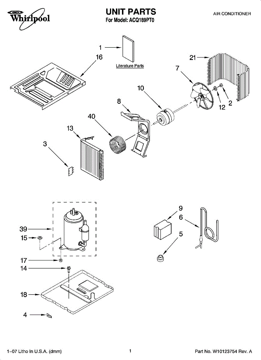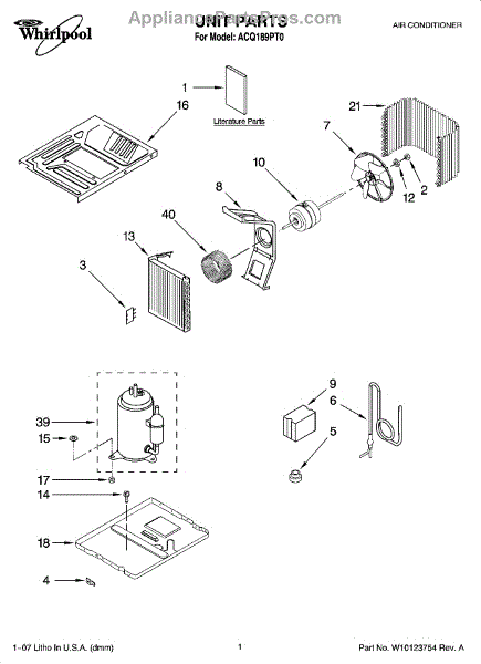 Parts for Whirlpool ACQ189PT0: 01 - Unit Parts