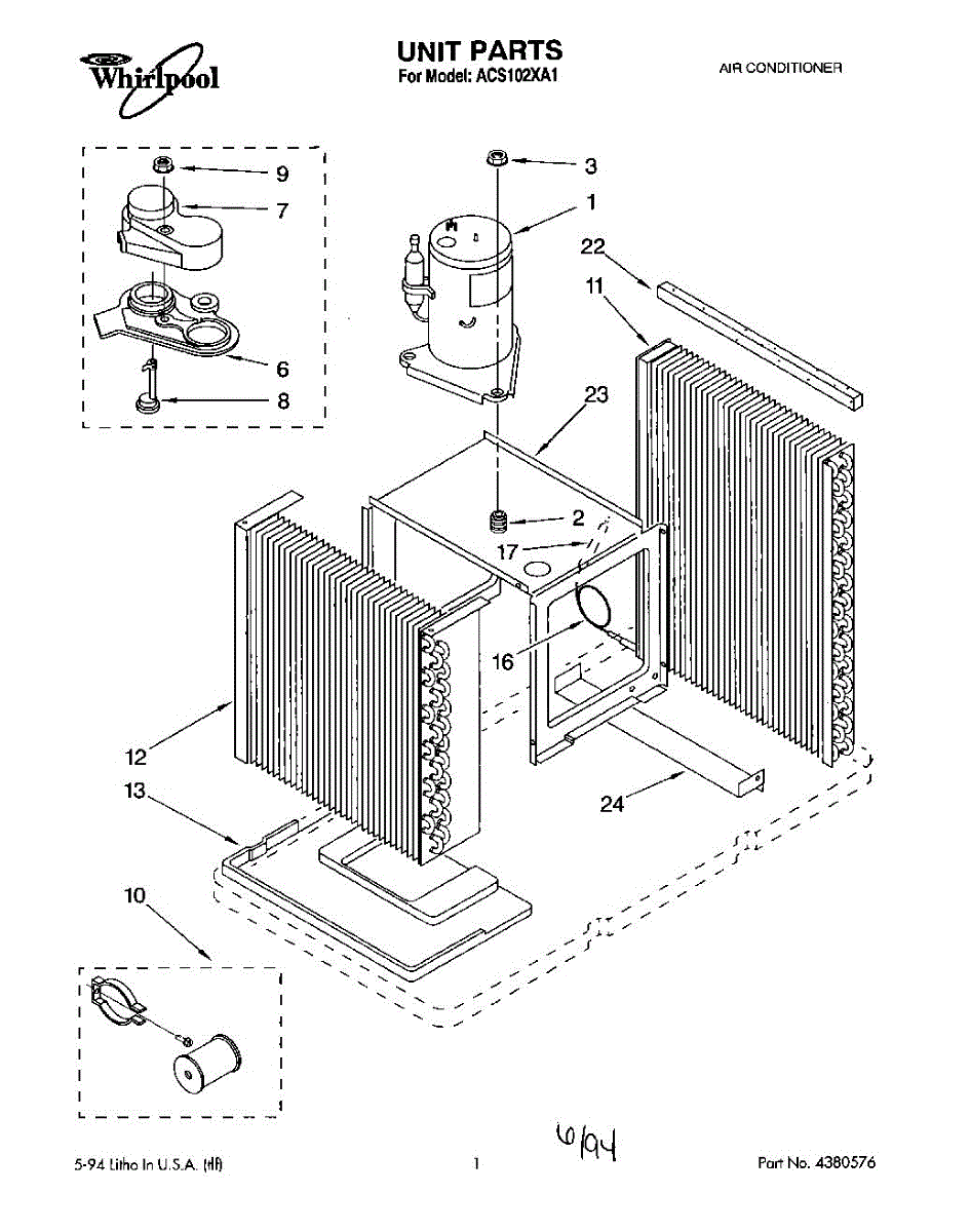 Parts for Whirlpool ACS102XA1: 01 - Section Parts