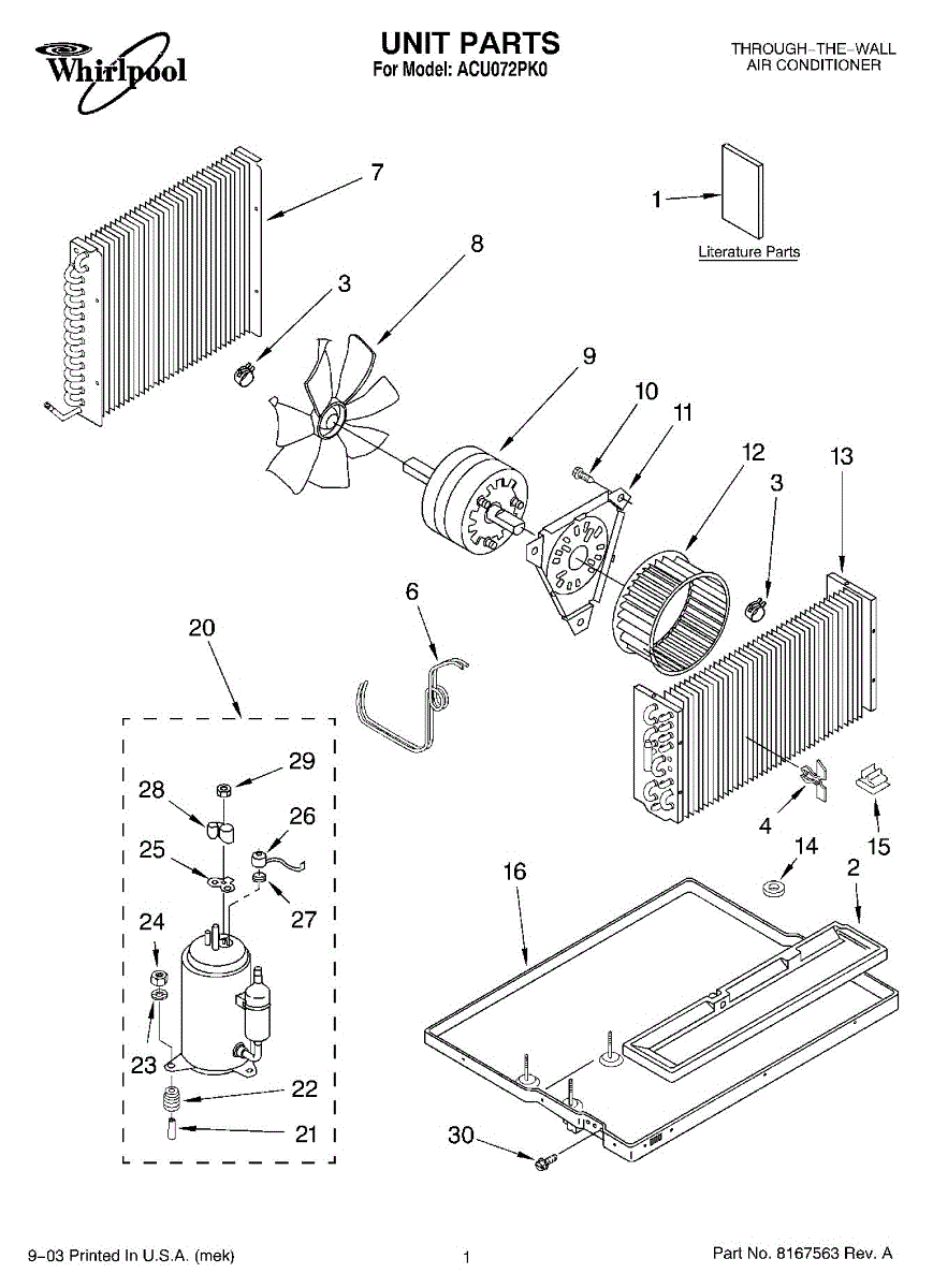 Parts for Whirlpool ACU072PK0: 01 - Unit Parts
