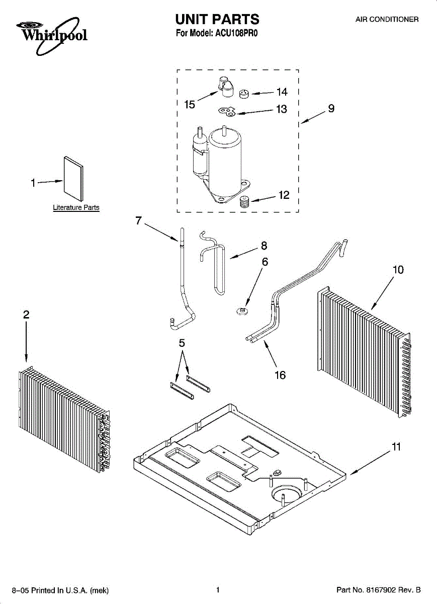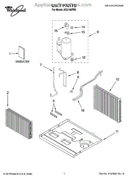 Parts for Whirlpool ACU108PR0: 01 - Unit Parts