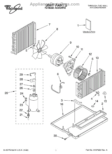 Parts for Whirlpool ACU124PK0: 01 - Unit Parts