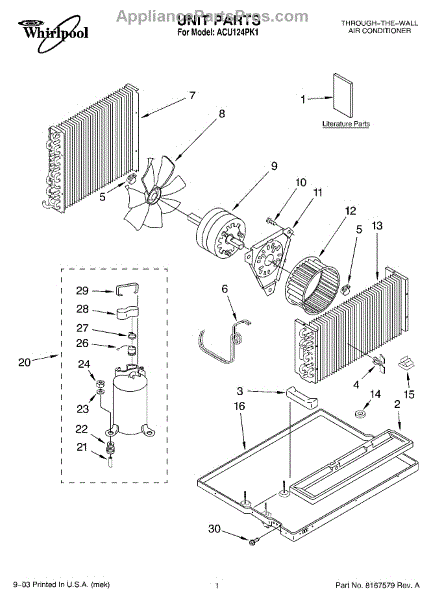 Parts for Whirlpool ACU124PK1: 01 - Unit Parts
