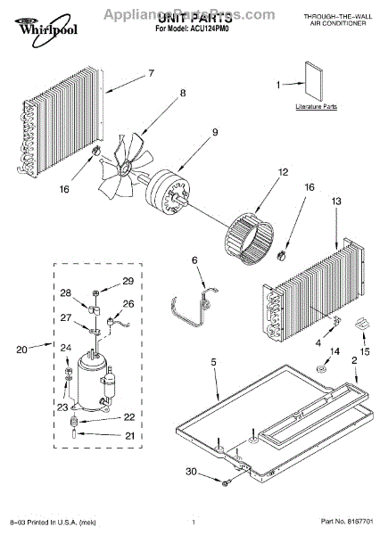 Parts for Whirlpool ACU124PM0: 01 - Unit Parts