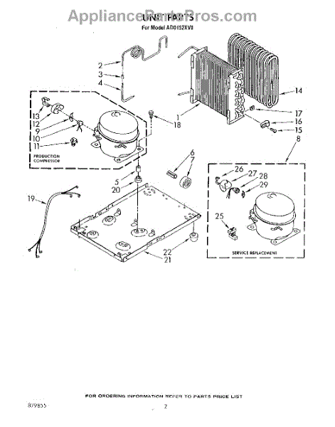 Parts for Whirlpool AD0152XV0: 02 - Section Parts