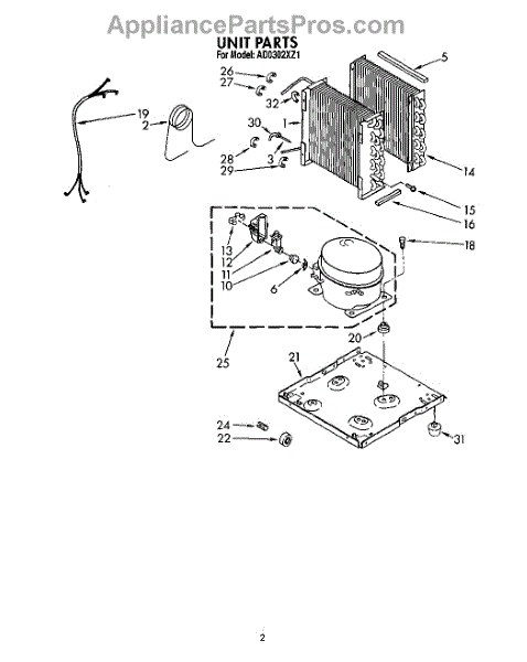 Parts for Whirlpool AD0302XZ1: 02 - Unit Parts