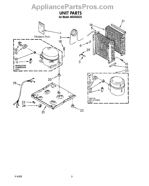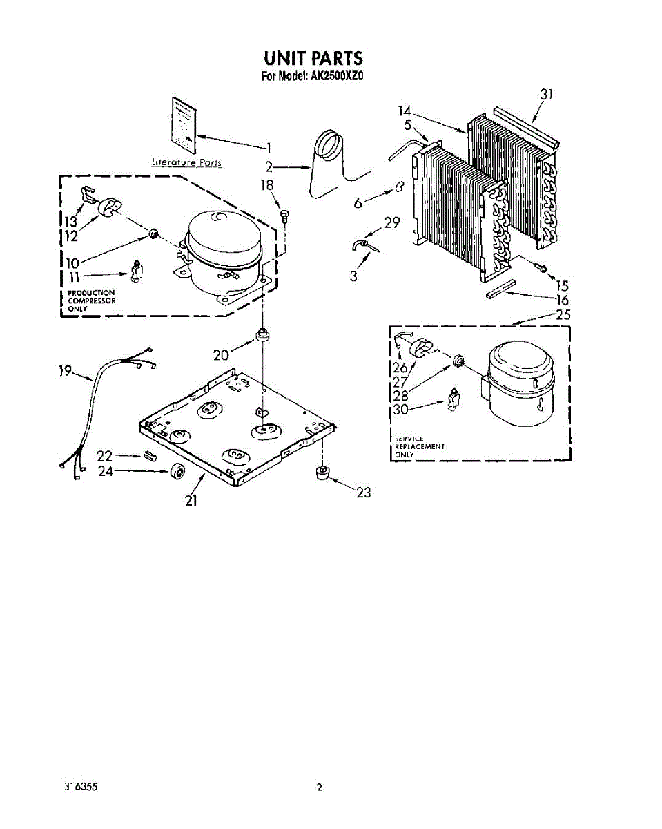Parts for Whirlpool AK2500XZ0: 02 - Section Parts