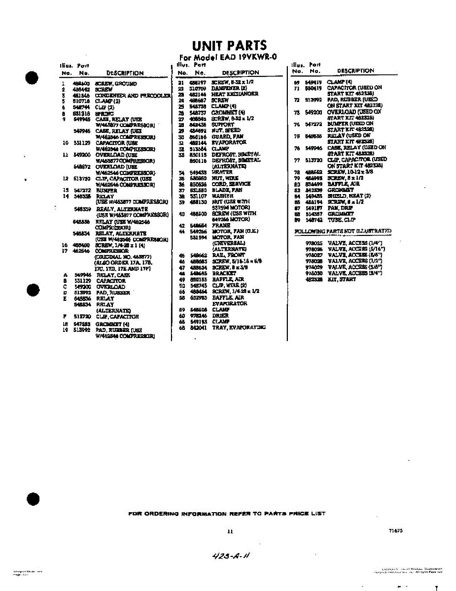 Parts for Whirlpool EAD19VKWR0: 10 - Unit Parts
