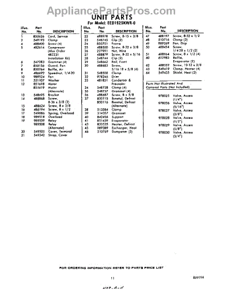 Parts for Whirlpool EED192SKWR0: 10 - Unit Parts