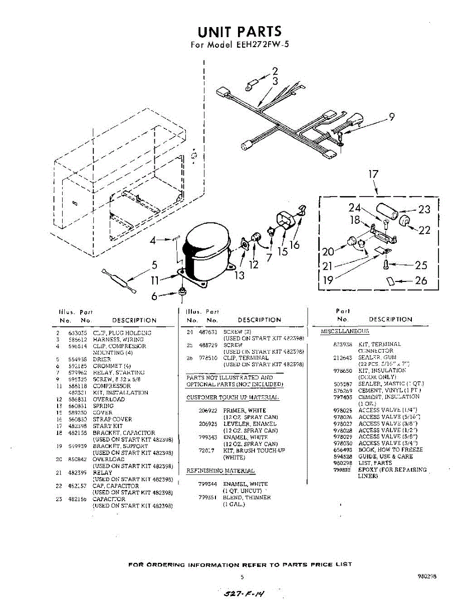 Parts for Whirlpool EEH272FW5: 05 - Unit Parts