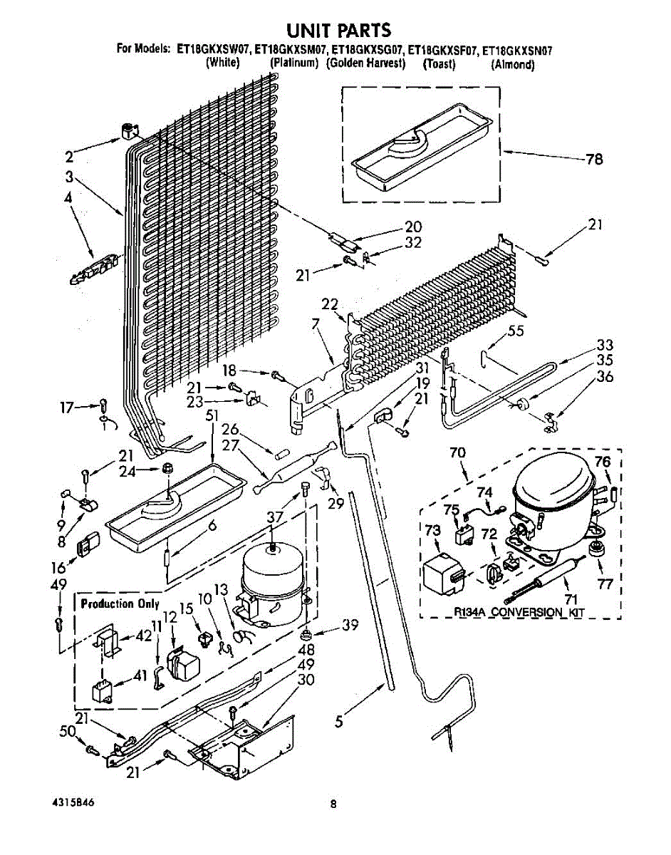 Parts for Whirlpool ET18GKXSW07: 07 - Unit Parts