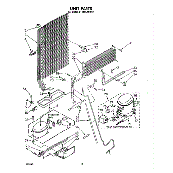 The Defrost Thermostat is an OEM part for Whirlpool refrigerators. The thermostat monitors the temperature of the evaporator coil and signals the defrost heater to turn on or off to prevent frost buildup, ensuring efficient cooling.