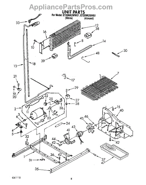 The Evaporator Drip Tray is an OEM replacement part for Whirlpool refrigerators. Causes of a bad drip tray can include cracks developing in the plastic over time. Mineral deposits may also accumulate, reducing the tray's drainage functionality. Symptoms of a bad Evaporator Drip Tray include: