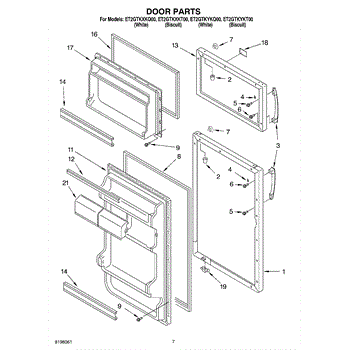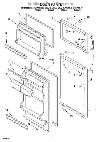 Handle clip for refrigerator and freezer doors. Secures handle to door exterior. Replace if clip is cracked, broken, or missing for proper handle attachment.