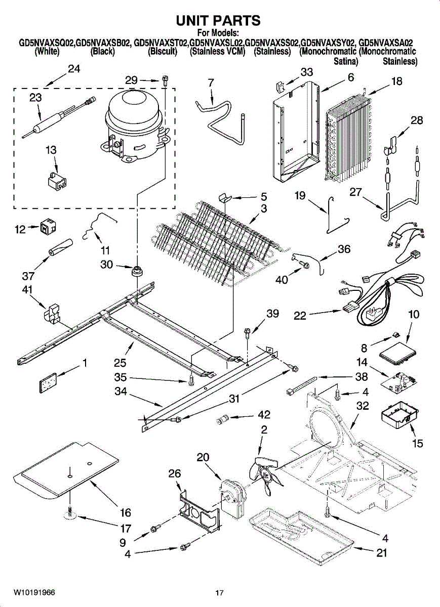 Parts for Whirlpool GD5NVAXST02: 11 - Unit Parts