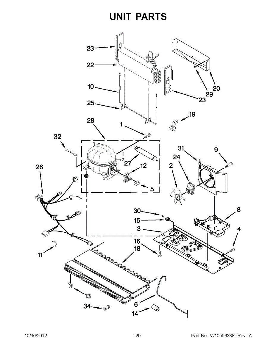 Plastic housing that covers and protects the evaporator fan assembly. Replace if cracked, broken, or damaged during drip pan repairs or maintenance.