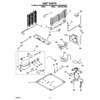 Secures the compressor to the refrigerator frame. Replace if strap is cracked, broken, or missing to properly mount and stabilize the compressor unit.