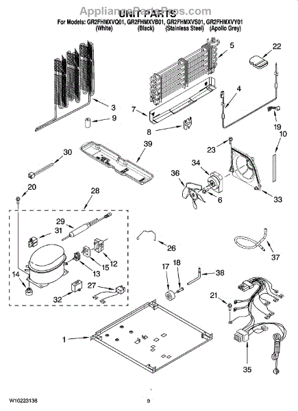 Parts for Whirlpool GR2FHMXVS01: 05 - Unit Parts