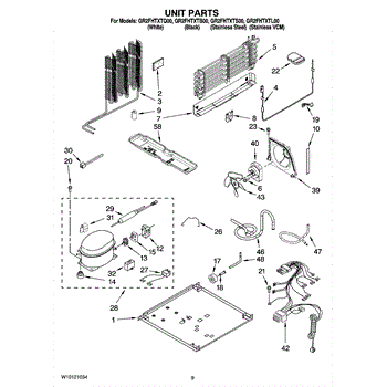 Secures the compressor to the refrigerator frame. Replace if strap is cracked, broken, or missing to properly mount and stabilize the compressor unit.