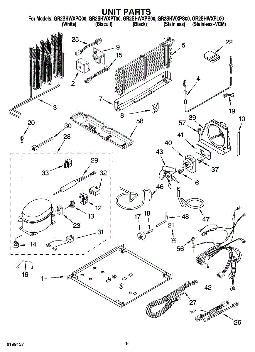 Secures the compressor to the refrigerator frame. Replace if strap is cracked, broken, or missing to properly mount and stabilize the compressor unit.