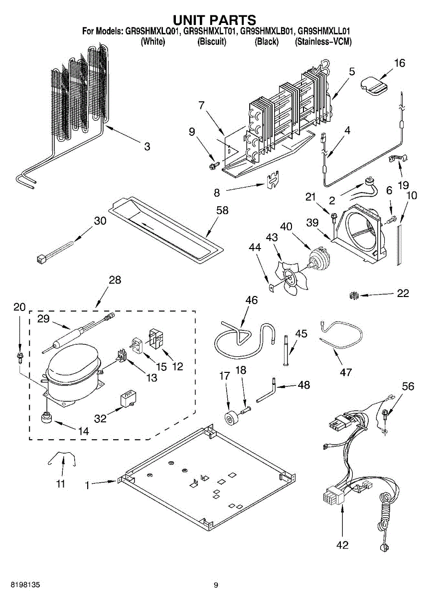 Parts for Whirlpool GR9SHMXLT01: 05 - Unit Parts