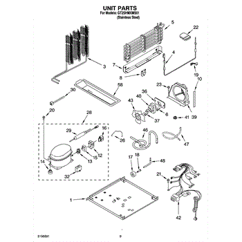 Secures the compressor to the refrigerator frame. Replace if strap is cracked, broken, or missing to properly mount and stabilize the compressor unit.