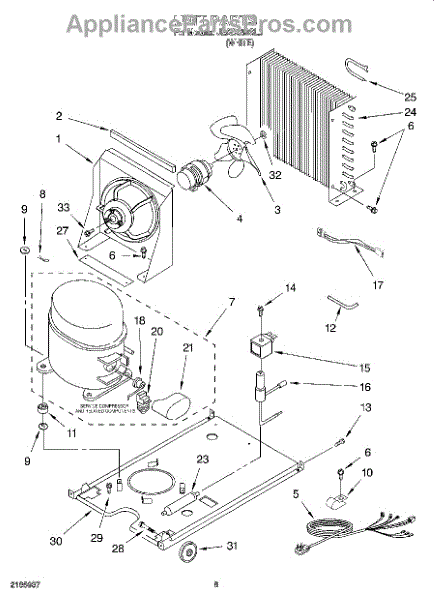 This refrigerator compressor circulates refrigerant to cool the appliance and restore proper temperatures. Replaces a failed compressor to help the refrigerator maintain set temperatures when the cooling system is compromised. What it does: