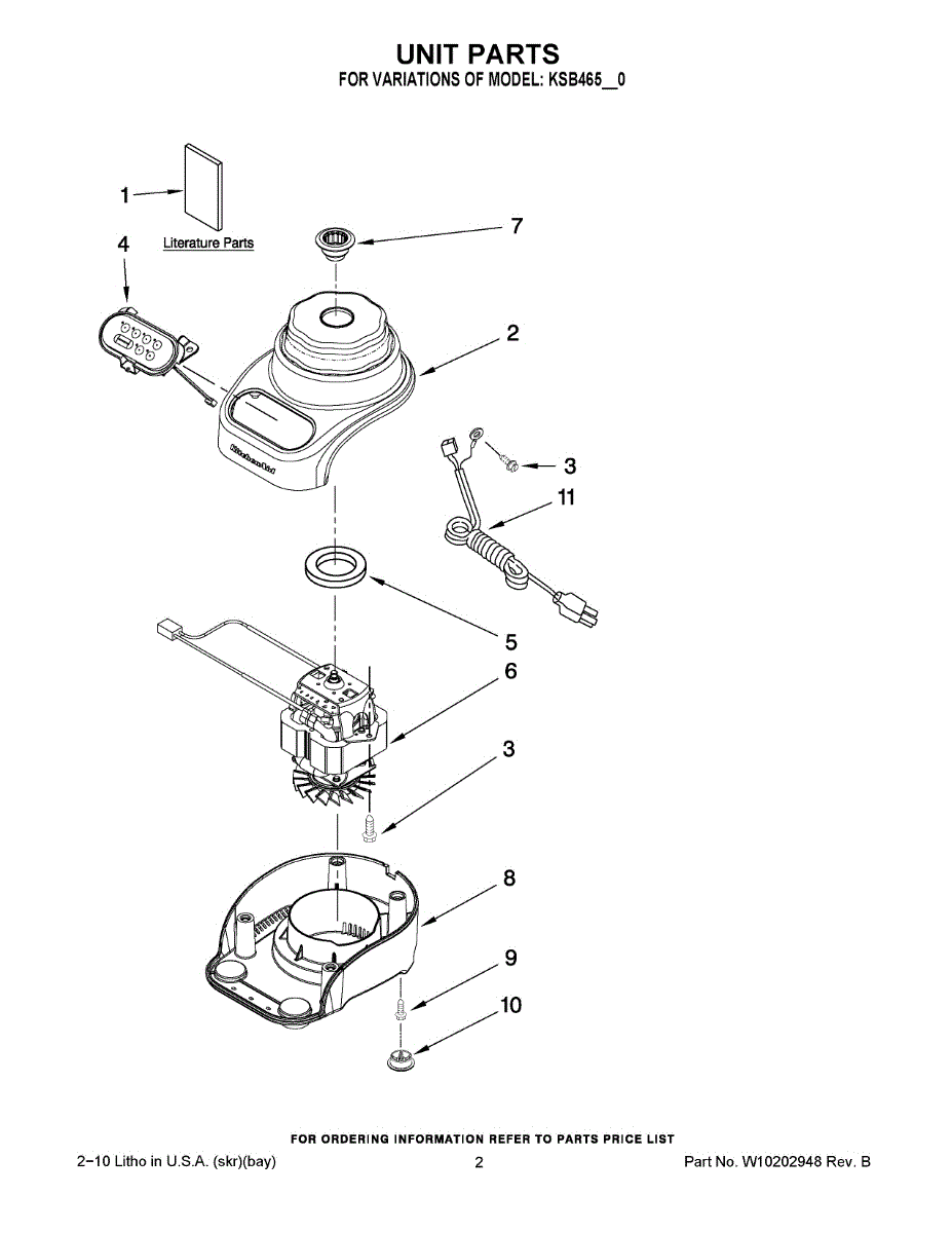 Parts for Kitchenaid KSB465QOB0: 01 - Unit Parts